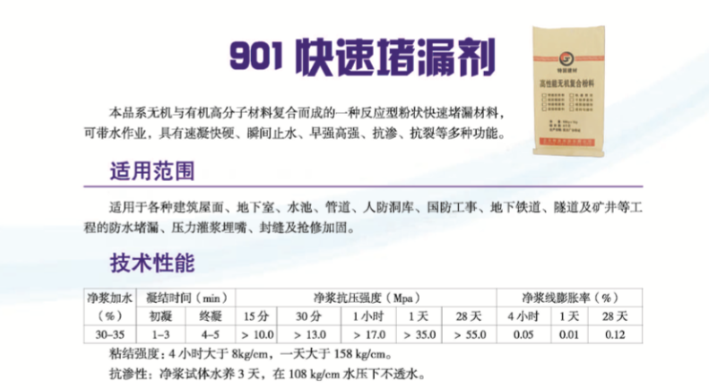 您的位置:首頁 > 產(chǎn)品展示 > 防水堵漏系列 > 901快速堵漏劑