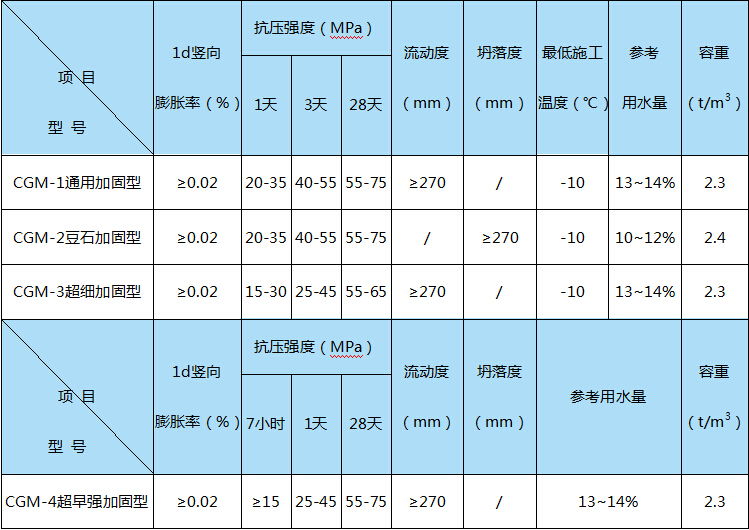 早強、高強:1~3天抗壓強度可達到30~50MPa以上,灌漿后24小時即可